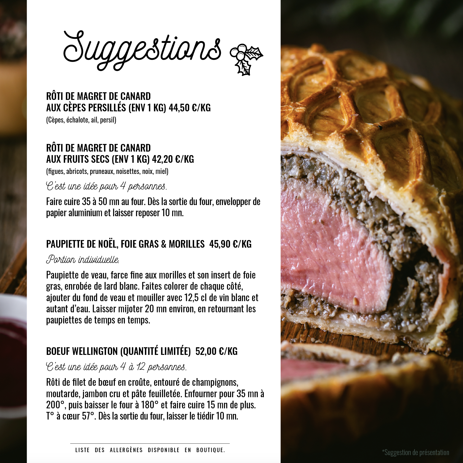 Retrouvez ici tous les détails de notre Menu de Fête, ainsi que les modalités de commande. Pour une meilleure organisation, les commandes se font uniquement en boutique, où un numéro de retrait vous sera remis.